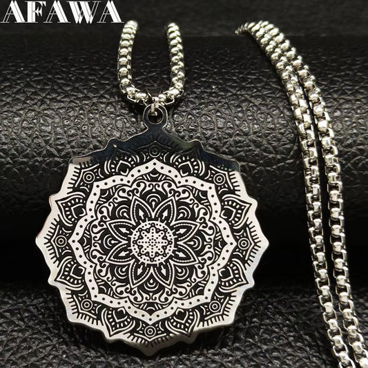Wicca Lotus Stainless Steel Chain Necklace for Men Silver Color Yoga Mandala Buddhism Necklace Jewelry Bijuterias B18204